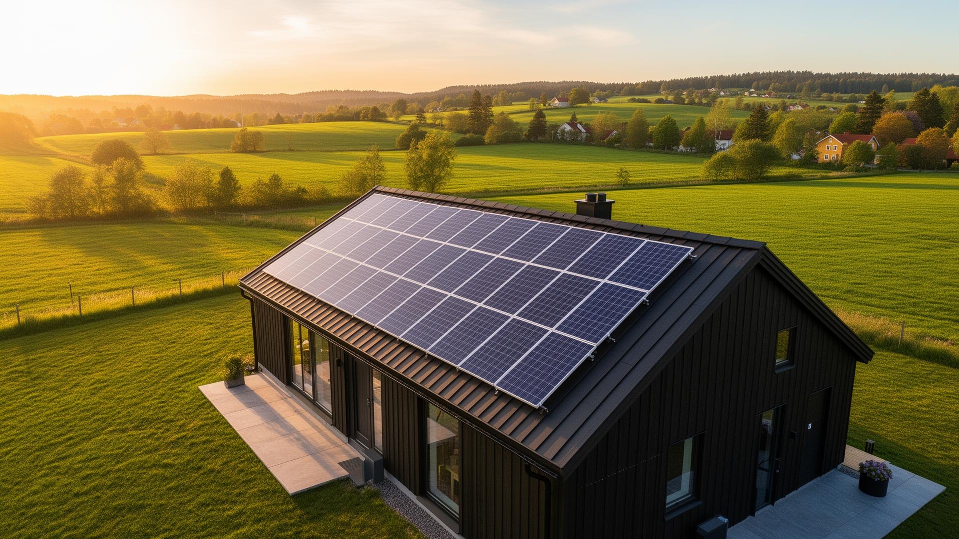 Skräddarsydda nätanslutna solcellssystem för villatak. Effektivt, snyggt och driftsäkert i decennier.